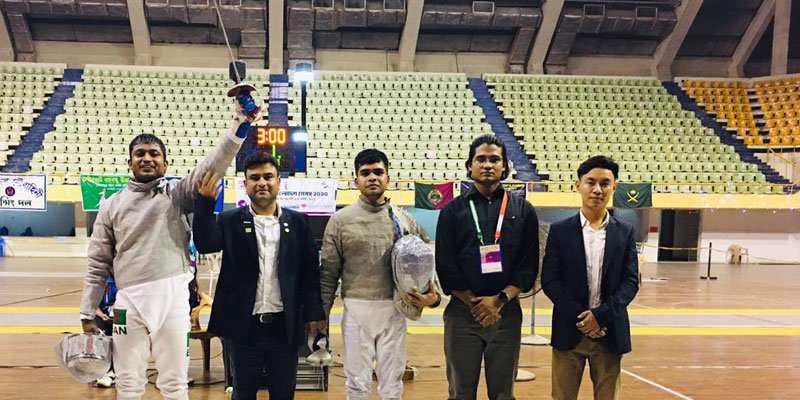 বঙ্গবন্ধু ৯ম বাংলাদেশ গেমসের প্রথম সোনার পদক জিতেছেন বাংলাদেশ নৌবাহিনীর ফেন্সার মো. ইমতিয়াজ।