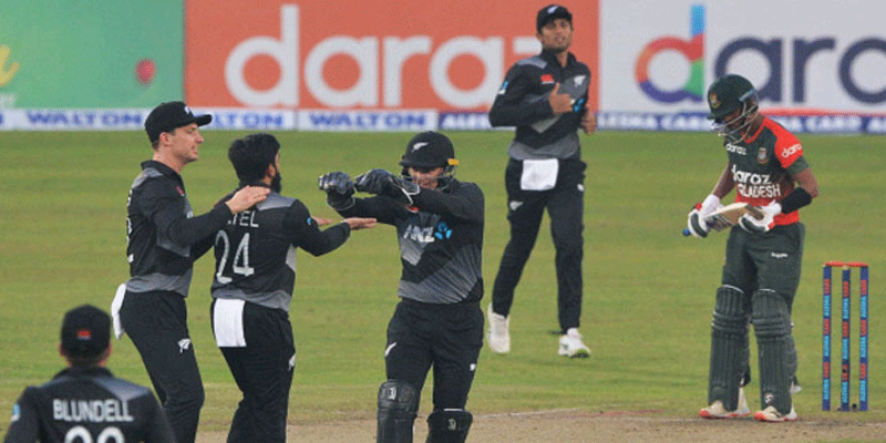 নিউজিল্যান্ডের দুই স্পিনার আজাজ প্যাটেল ও কোল ম্যাককঞ্চির ঘূর্ণিতে সিরিজের তৃতীয় ম্যাচে হেরে গেল স্বাগতিক বাংলাদেশ। আজ সিরিজের তৃতীয় ম্যাচে নিউজিল্যান্ডের কাছে ৫২ রানের বড় […]